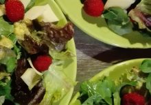 Ensalada de espinaca, berros, rúcula y frambuesas
